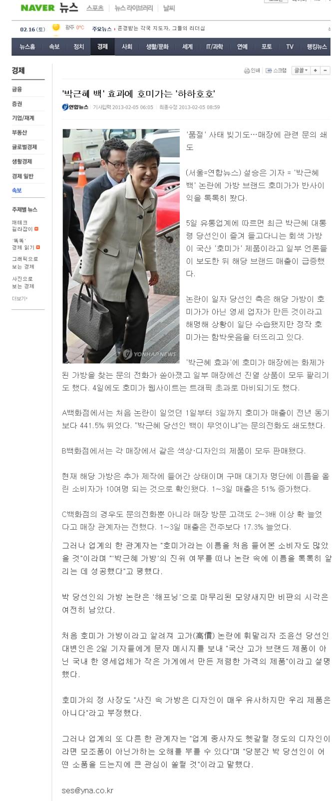 [네이버뉴스]"박근혜 백" 효과에 호미가는 "하하호호"