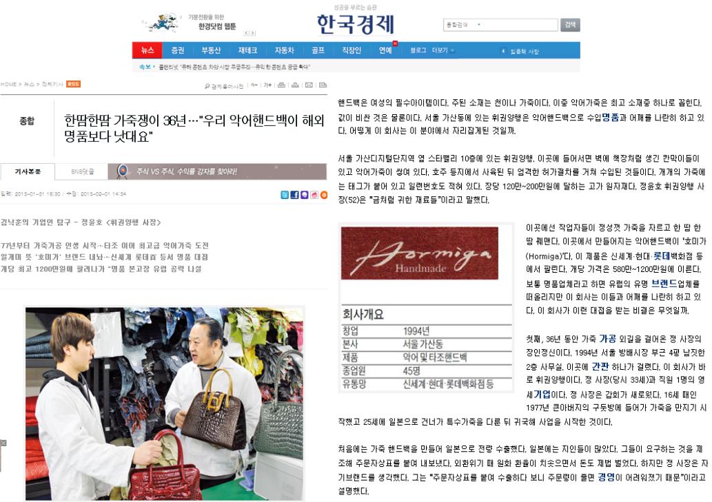 [한국경제]한땀한땀 가죽쟁이 36년...."우리 악어핸드백이 해외명품보다 낫대요"
