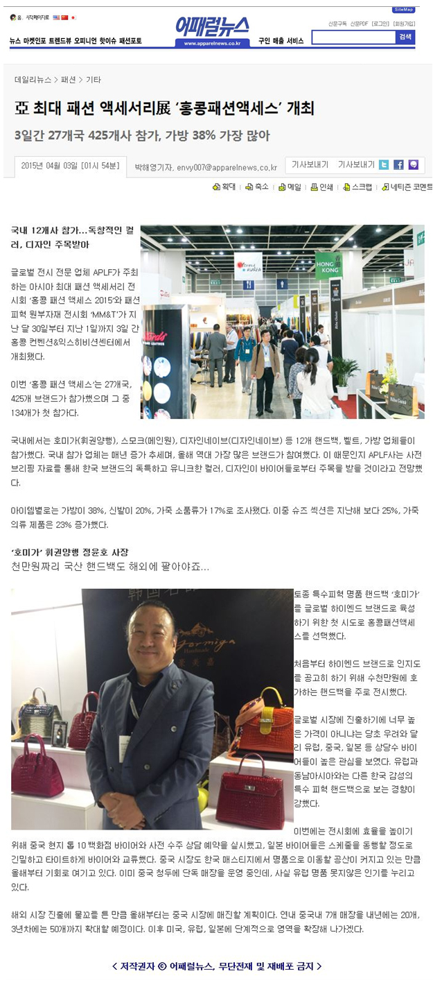 [어패럴뉴스]亞최대 패션 액세서리展 '홍콩패션액세스'개최 [이 게시물은 호미가님에 의해 2015-06-26 17:33:59 보도자료에서 복사 됨]