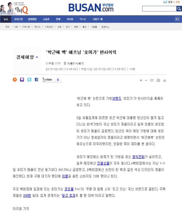 [부산일보]'박근혜 백' 해프닝 '호미가' 반사이익 [이 게시물은 호미가님에 의해 2013-06-26 19:08:17 보도자료에서 복사 됨]