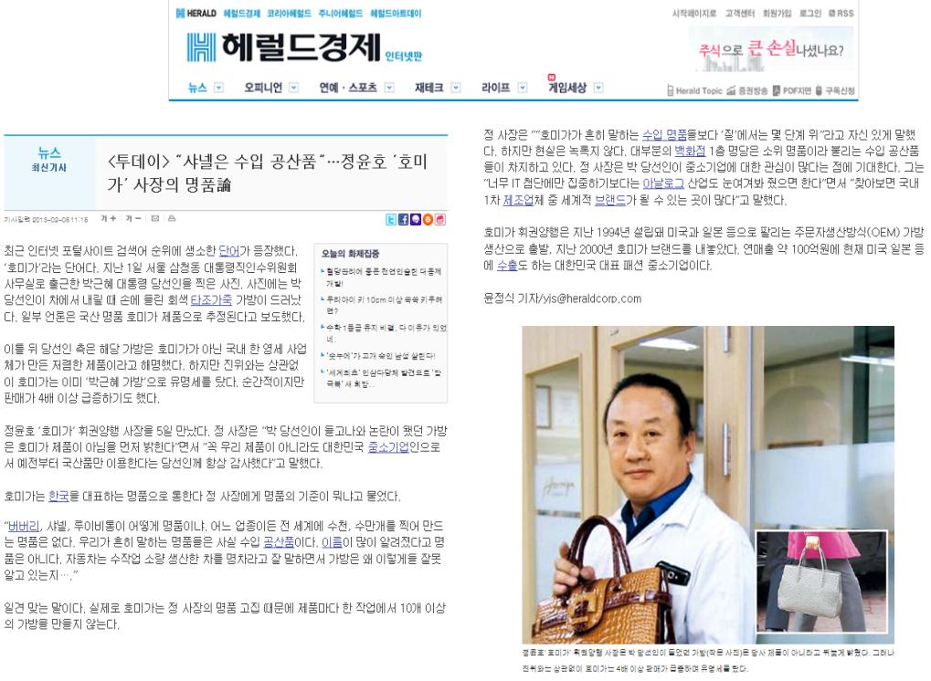 [헤럴드경제]"샤넬은 수입 공산품"... 정윤호"호미가" 사장의 명품論 [이 게시물은 호미가님에 의해 2013-06-26 19:08:17 보도자료에서 복사 됨]