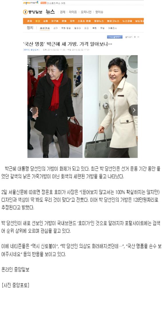 [중앙일보]"국산명품" 박근혜 새가방, 가격 알아보니....