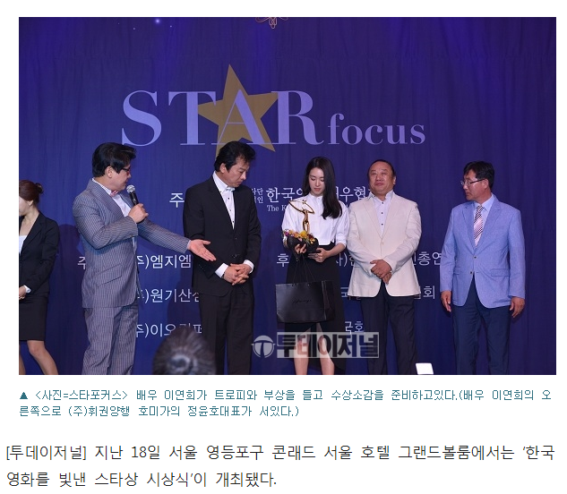 6월17일 열린 한국영화배우협회주최"한국을 빛낸 스타상" 시상식에서