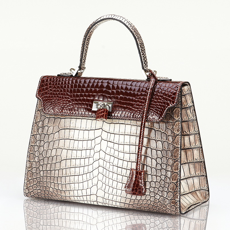 This is a completely hand-stitched crocodile bag and is product prepared ambitiously by compiling the unique knowhow of HORMIGA. It takes many hours of skilled efforts and high degrees of concentration that only the world-renowned brand, Hermes, can produce such hand-stitched hand bag.